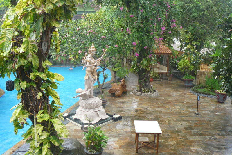 De vlucht met KLM was voorbeeldig, ook wat service betreft. We waren op uur in Singapore – waar het al meteen 34 graden was, en na het bijtanken ook op het voorziene uur in Denpasar. Dan een visum regelen, bagage ophalen en door de douane gaan, geld wisselen en met de taxi naar ons hotel, Green Garden Resort en Spa in Tuban, op enkele kilometers van de luchthaven. Al bij al waren we van de landing tot aan ons hotel maar een uur bezig!