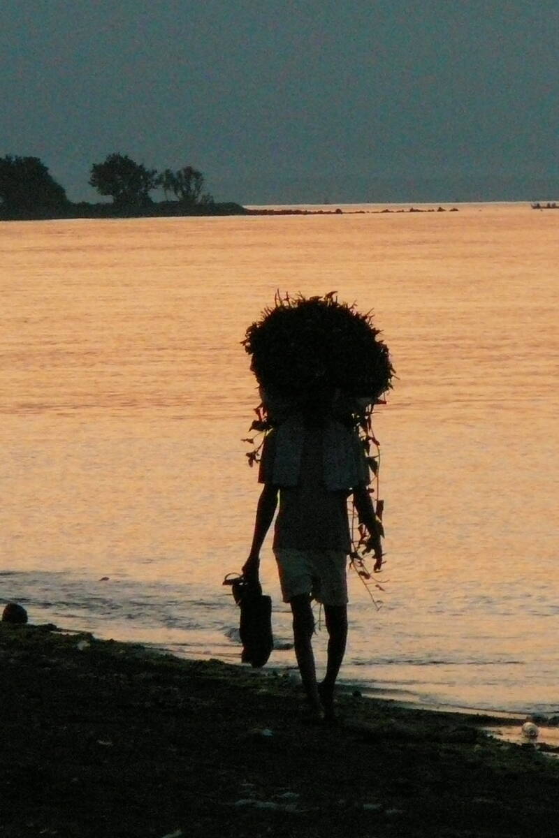 Een uur later zijn we terug met een pak nieuwe foto's en enkele minuten film. 'k Kan er niet veel over zeggen, je moet het zelf zien: 't is overweldigend. Honderden en honderden mensen met even zoveel offergaven voor de goden en de demonen. Het hele dorp moet leeggelopen zijn. En van het dorp naar de kust is het toch enkele kilometers wandelen in de hitte van de dag. Terwijl ik dit schrijf hoor ik nog altijd de voorbeden en gezangen enkele honderden meters verderop.