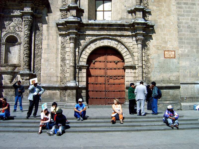 Die avond gingen we nog even op het pleintje voor de prachtige San Francisco-kerk, het mooiste koloniale gebouw van La Paz, daterend van 1745. In de barokke gevel zie je goed de invloed van de indianen, de zogenaamde “plantenstijl”.