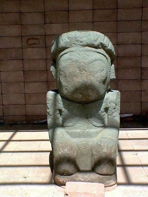 Op het einde van ons bezoek toonde de gids ons hoe ze in de precolumbiaanse tijd aan geluidsversterking deden. Als je je oor voor een van de gaten van de binnenmuur houdt, hoor je perfect wat mensen zeggen die in een rechte lijn op zo’n goede twintig meter afstand tegen elkaar zitten te fluisteren. Of, als je in dat gat begint te praten, klinkt je stem voor de mensen op het plein alsof je in een megafoon zit te roepen. Heel ingenieus en heel leuk. Onwillekeurig moesten we denken aan het grote plein van Chichčn Itzŕ, waar ze ook zo’n trucjes gebruikten om geluiden te weerkaatsen, al had het daar wel te maken met de stand van de tempels ten opzichte van elkaar.