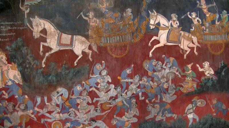 De binnenplaats rond de Zilveren Pagode wordt omringd door een 640 m lange muur met galerij. De binnenkant van de muur heeft fresco's in levendige kleuren, met voorstellingen uit het Ramayana-verhaal.