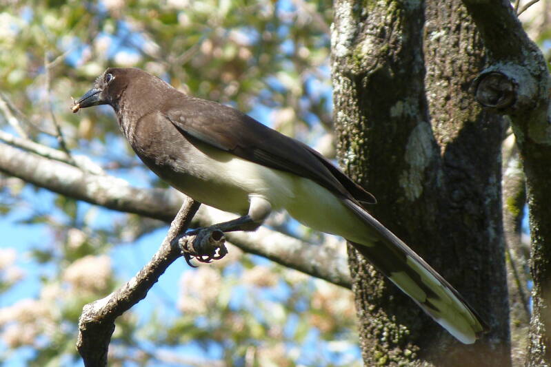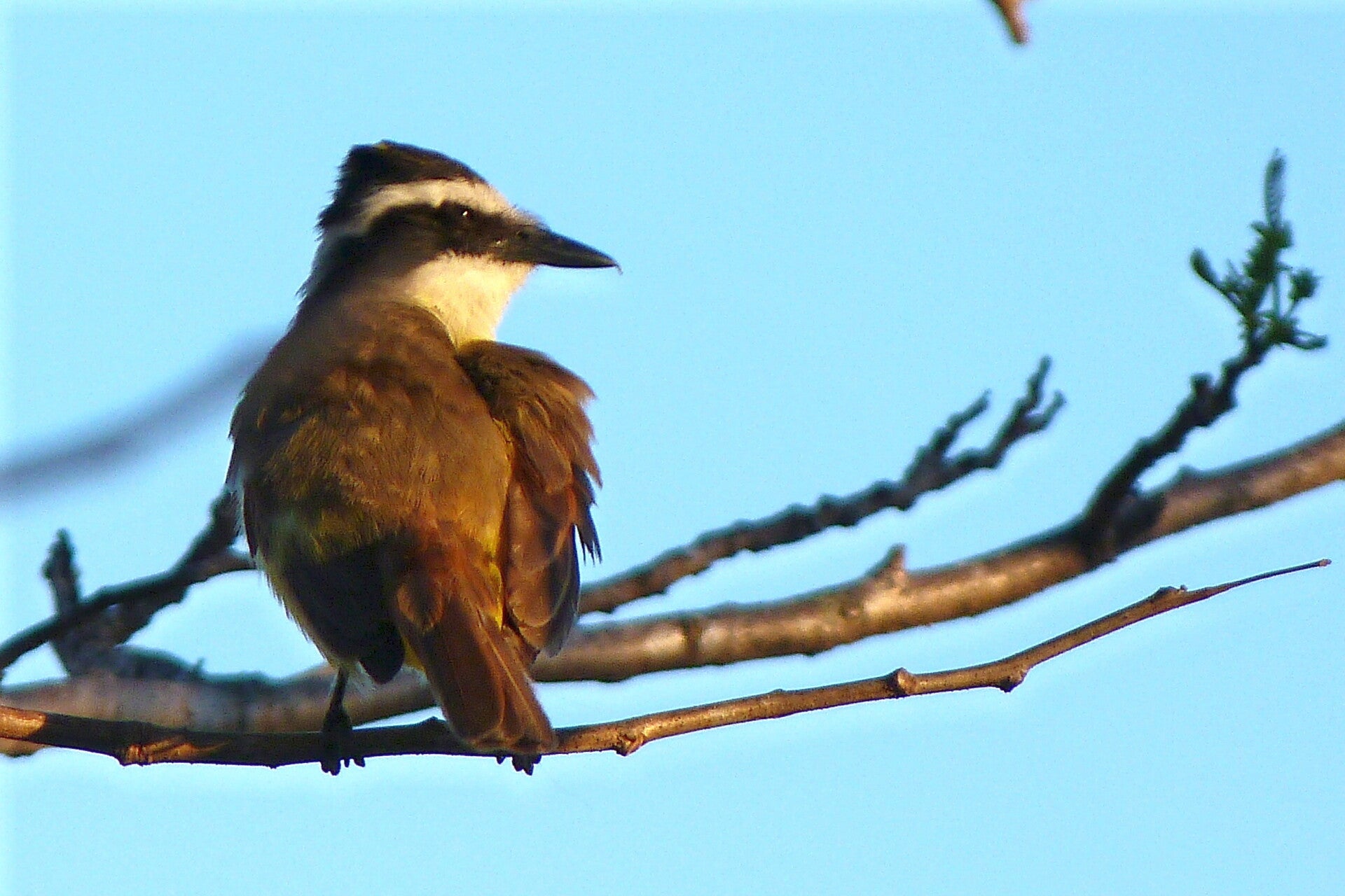 We blijven er een uurtje en gaan dan terug, begeleid door het geluid van ontelbare fluitketels. Beter kan ik het niet uitdrukken. Er vliegt ginds immers een grote vogel rond die het geluid van een fluitketel produceert op het moment dat het water begint te koken. Te gek om los te lopen. Maar als er zo’n ganse vloot vogels boven jou fluitend in de bomen zit, dan weet je echt niet wat je hoort.