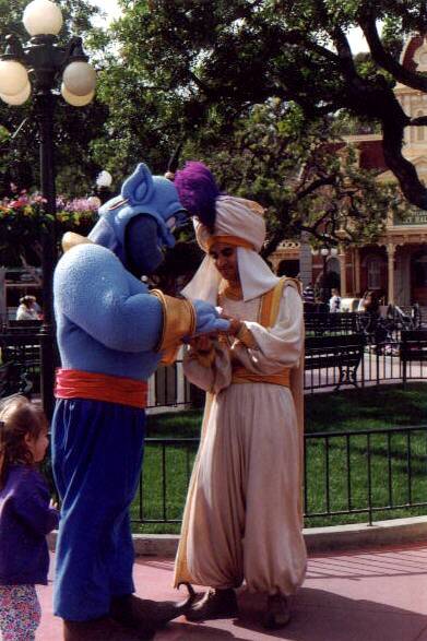Weldra lopen we de imposante laan af die ons tot aan het standbeeld van Walt Disney en Mickey Mouse brengt. Daarna zijn we in een andere wereld, de wereld van de sprookjes, langs straten en huizen ontsproten uit de geest van Disney. We komen er allerlei vrienden uit onze kindertijd tegen: Goofy, de djinn uit Aladinn, Donal Duck... En even verder botsen we zowaar op Mickey himself!