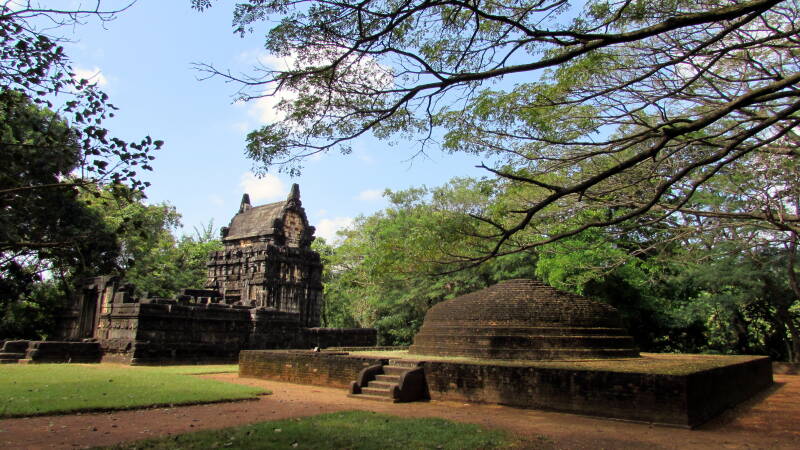 Op onze tocht naar Kandy maken we een kleine omweg om het boeddhistische beeldenhuis Nalanda Gedige te gaan bekijken. Via een dam bereiken we de kleine tempel. Het is een zeldzaam voorbeeld van de architectonische vermenging van boeddhisme en hindoeïsme. We vinden er zelfs een reliëf met (erg geërodeerde) erotische tantra taferelen.