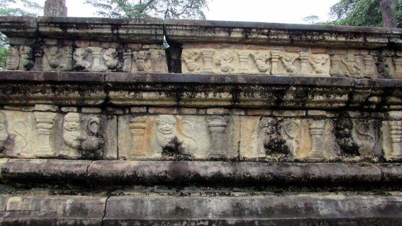 De Vatadage. De buitenmuren zijn versierd met friezen met leeuwen, dwergen en lotussen, en bij elk van de vier toegangen zijn schitterend gebeeldhouwde maanstenen en wachterstenen te zien.