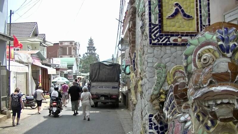 Op 8 km van het centrum van Da Lat bezoeken we de Linh Phuoc Pagode.
