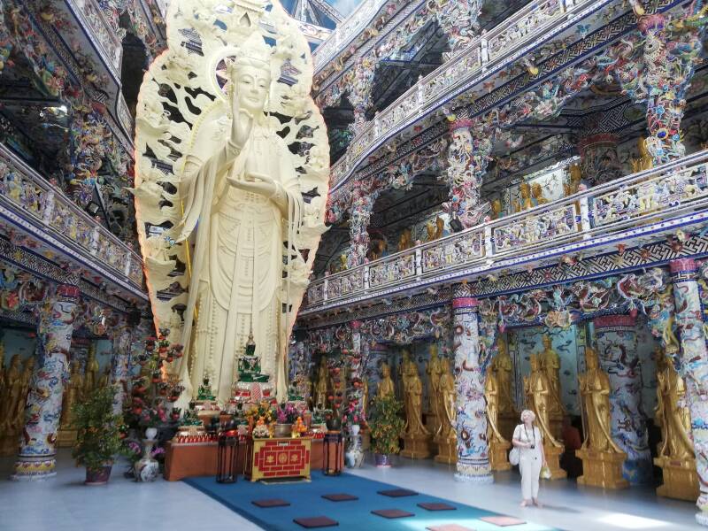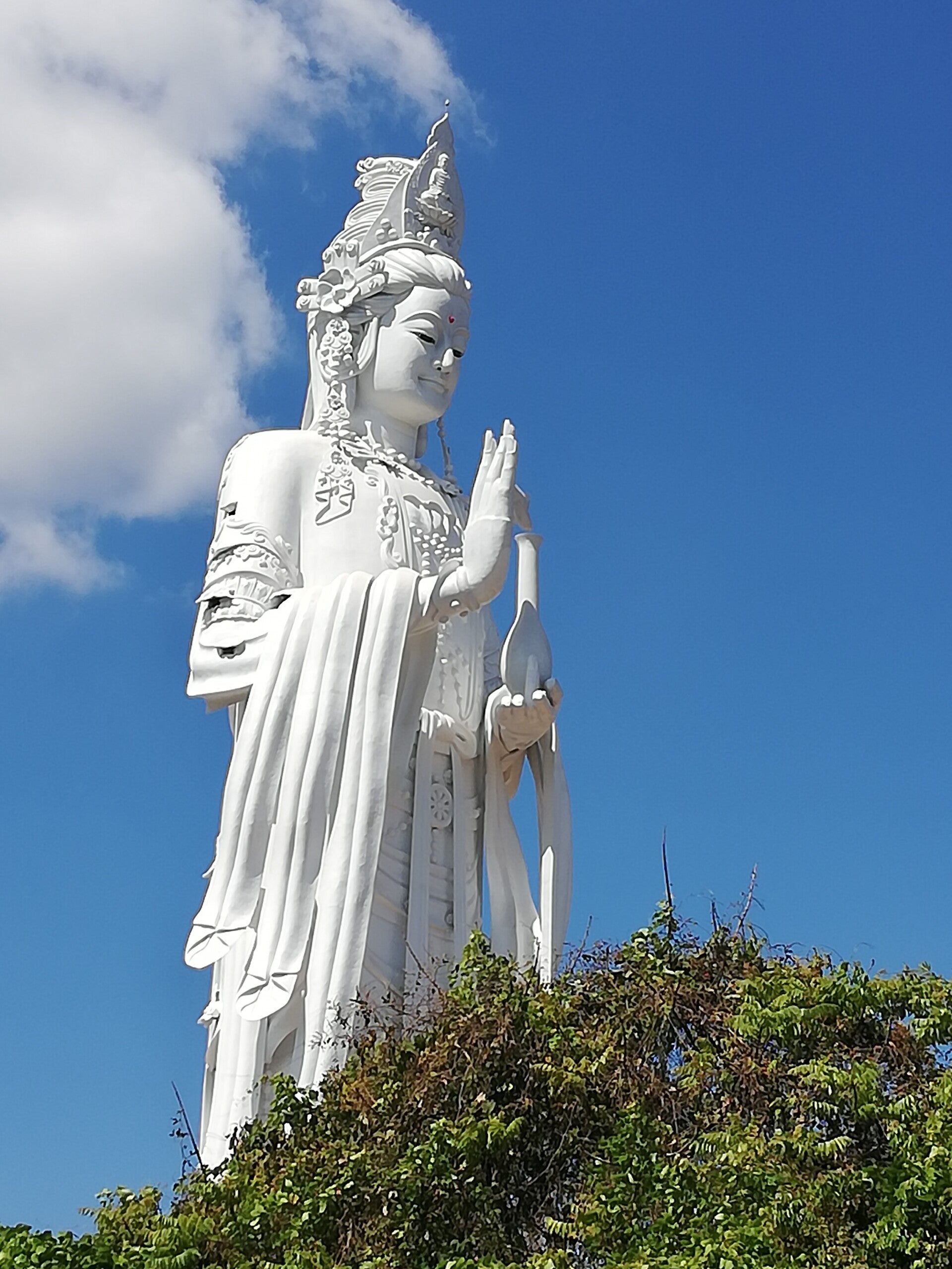 Enkele tientallen meters voorbij de waterval kunnen we de Linh An pagode gaan bezoeken. De pagode staat op een terrein van 4 ha. Het eerste wat de aandacht trekt is een 54 meter hoog beeld van een bodhisattva. (In het boeddhisme is een bodhisattva elke persoon die op weg is naar boeddhaschap.)