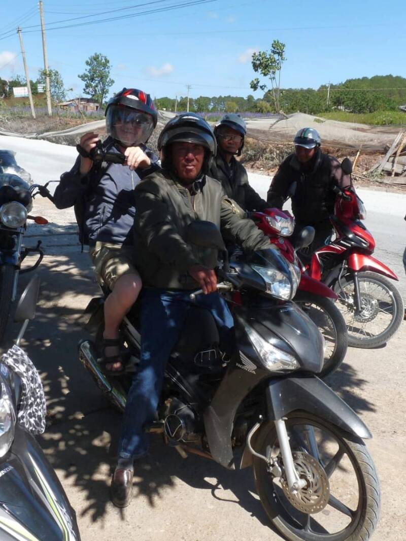 Vandaag is het een heel speciale dag. We hebben met de groep een daguitstap geboekt met de Easy Riders. De Easy Riders is een los samenwerkingsverband van gidsen op motoren. Een groep mannen die in het naoorlogse Vietnam geen werk vonden, zijn er in 1990 mee begonnen. Nu zijn ze zelf ook een toeristische attractie geworden. Om acht uur zitten we allemaal achteraan op een moto en vertrekken voor een urenlange tocht in de wijde omgeving van Da Lat.