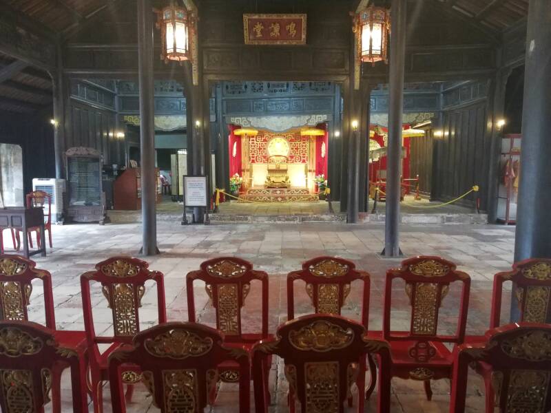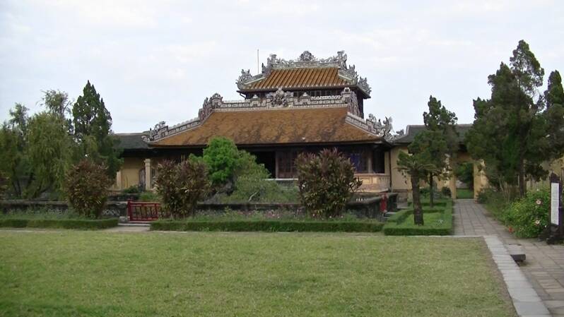 Na de Ngo Mon-poort komen we bij de Brug van het Gouden Water (Trung Dao), die ooit alleen mocht worden betreden door de keizer. De brug voert naar het Thai Hoa-paleis, het Paleis van de Opperste Harmonie. Hier hield de keizer om de twee maanden audiëntie met zijn hof. Achter het Thai Ho-paleis ligt het derde en laatste ommuurde deel van de citadel, de Verboden Purperen Stad (Tu Cam Thanh). Deze stad binnen de stad was voorbehouden aan de keizer en zijn familie. Omdat de Viet Cong de stad als bunker gebruikte, is de Verboden Purperen Stad tijdens het Tet-offensief van 1968 vrijwel geheel verwoest. De bouwwerken worden momenteel gerestaureerd.