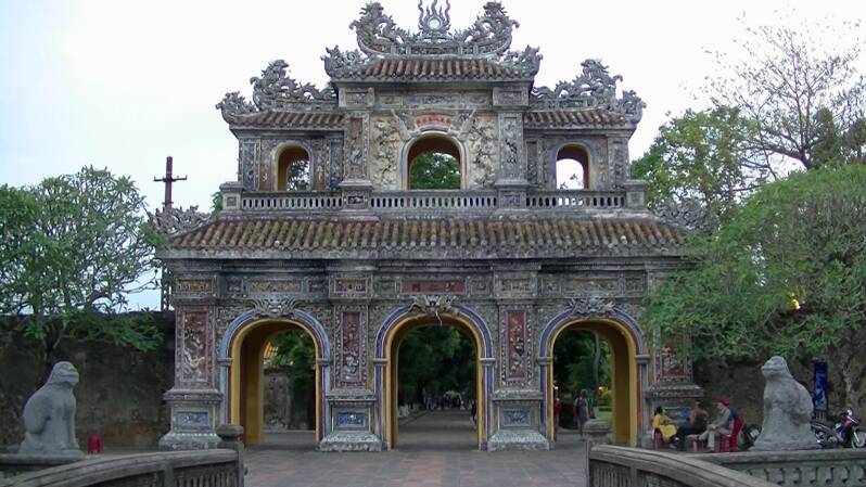 Om acht uur zijn we weer de hort op, bestemming Hoi An. Maar eerst bezoeken we nog de tombe van keizer Tu Duc. Langs de oevers van de rivieren Song Huong (Parfumrivier), Ta Trach en Hay Trach liggen meerdere voormalige Vietnamese keizers begraven. Deze keizerlijke tombes bieden een goed inzicht in hoe keizers vroeger begraven werden. Je kunt de Keizerlijke tomben van Tu Duc, Dong Khank, Thieu Tri, Minh Mang en Gia Long bezoeken. Wij bezoeken de keizerlijke tombe van Tu Duc die algemeen als de mooiste wordt beschouwd. De tombe staat in een fraai aangelegde tuin, naast andere gebouwen zoals het verblijf van zijn 104 vrouwen en minnaressen.