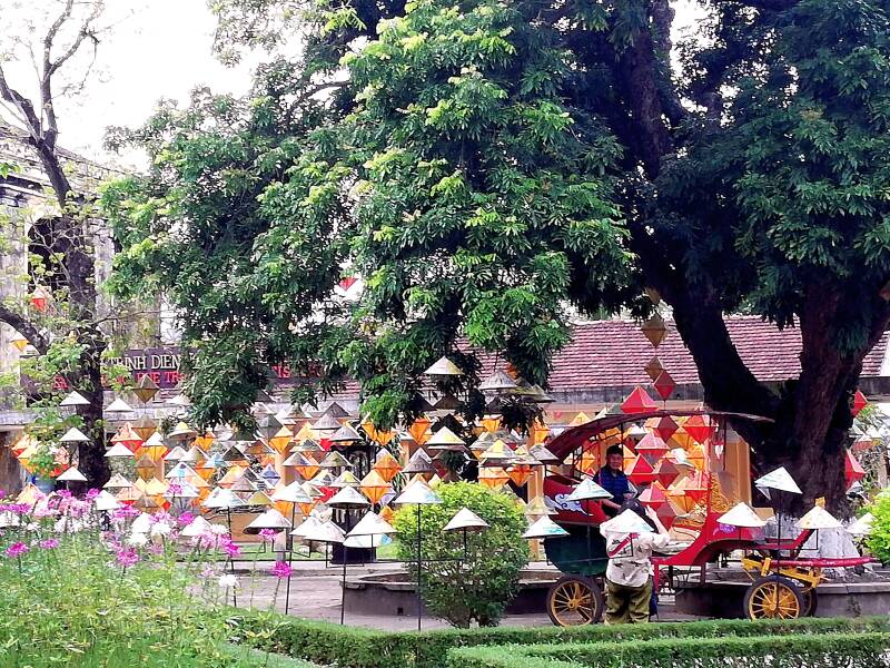 De volgende morgen komen we aan in Hué. Door de treinwissel zijn we echter twee uren kwijt, wat ons programma zwaar onder druk zet. Ik begreep al niet waarom we in deze voormalige keizerstad maar één dag bleven. Er is zoveel te zien dat je er gemakkelijk drie dagen kunt verblijven.